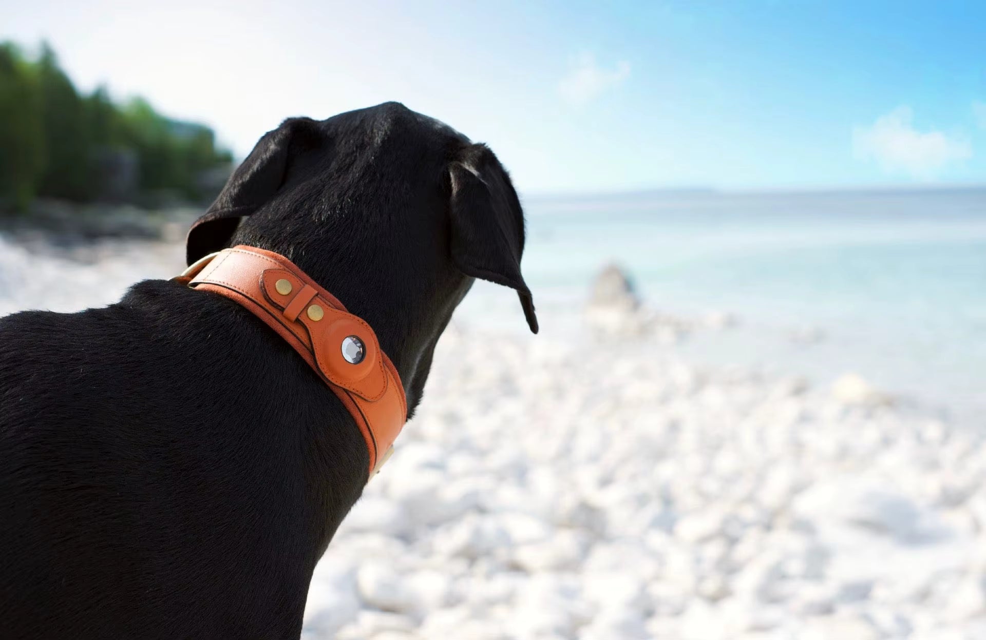Luxury Leather Dog Collar with AirTag (GPS Tracker for Dogs)